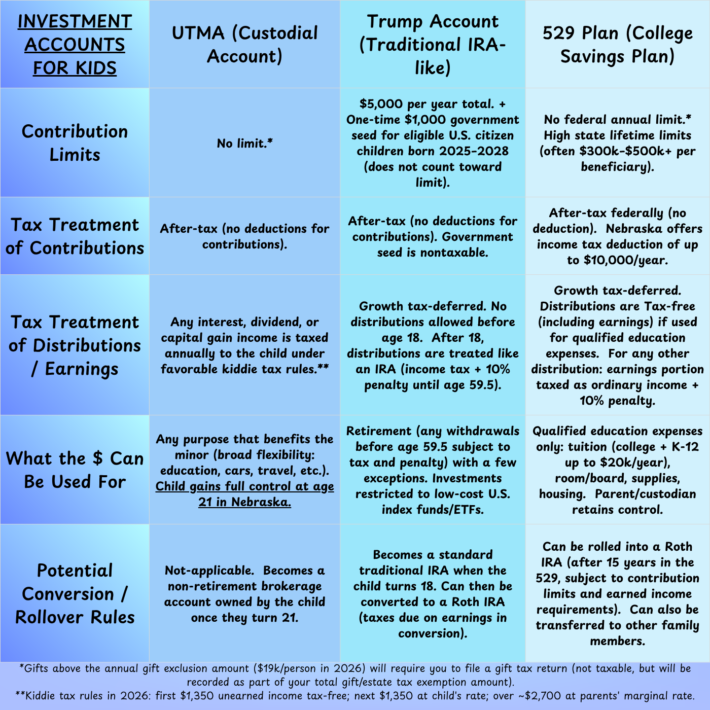 Below is a comprehensive chart comparing UTMA, Trump Accounts, and 529 plans: